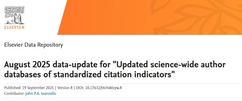日前,斯坦福大学和国际权威学术出版社爱思唯尔共同发布了2025年全球前2%顶尖科学家榜单(World's Top 2% Scientists)第八版。