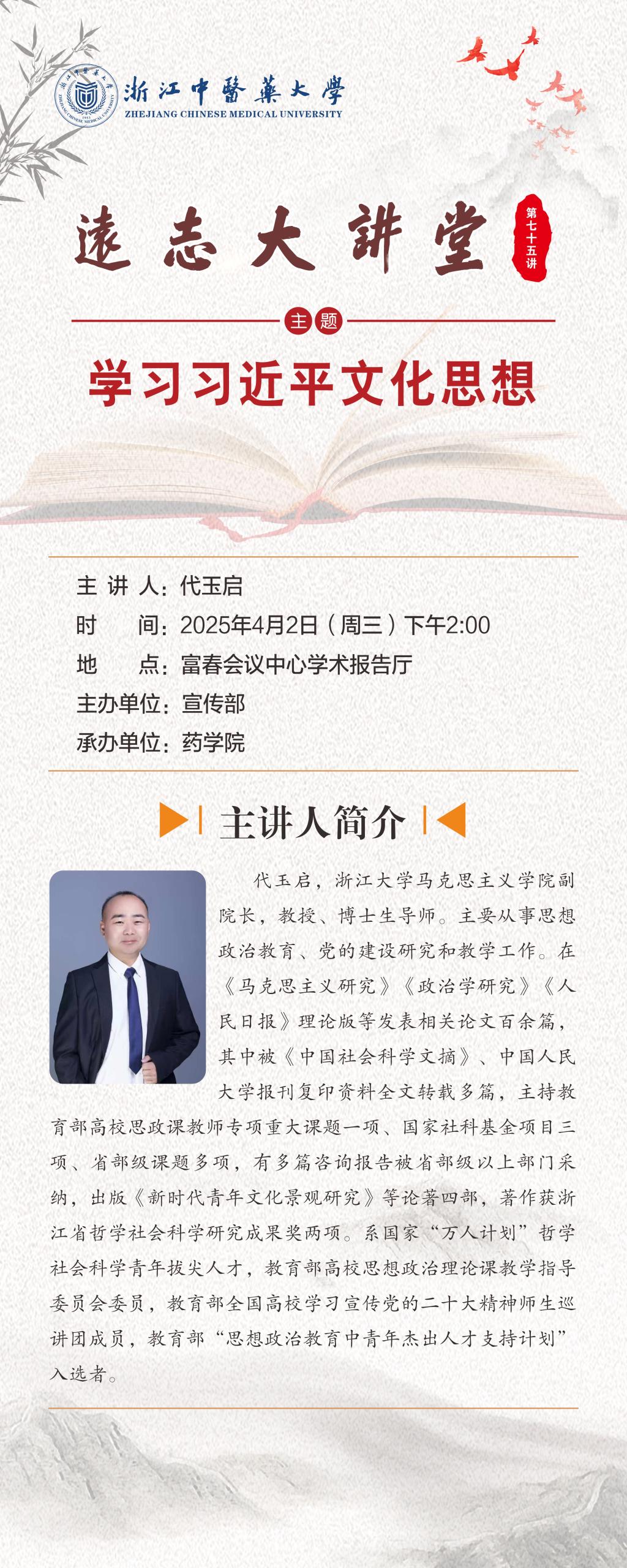 远志大讲堂第七十五讲预告:学习习近平文化思想