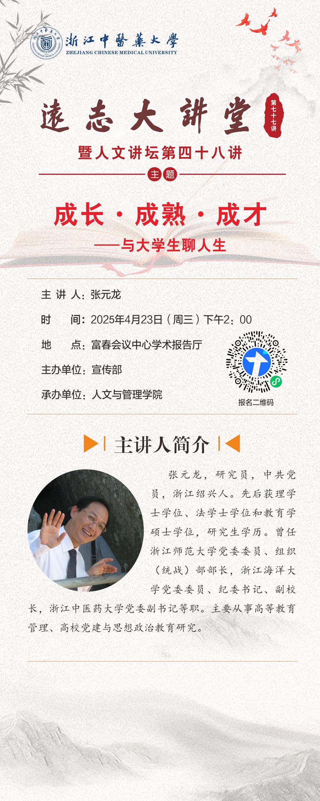 远志大讲堂第七十七讲暨人文讲坛第四十八期预告:成长·成熟·成才——与大学生聊人生