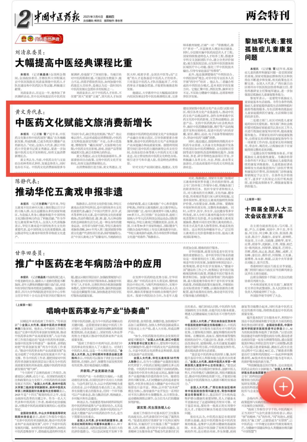 黄文秀建议,由文化和旅游部牵头,多部委协同出台政策,支持中医药文化开发转化,培育文旅消费新增长点。