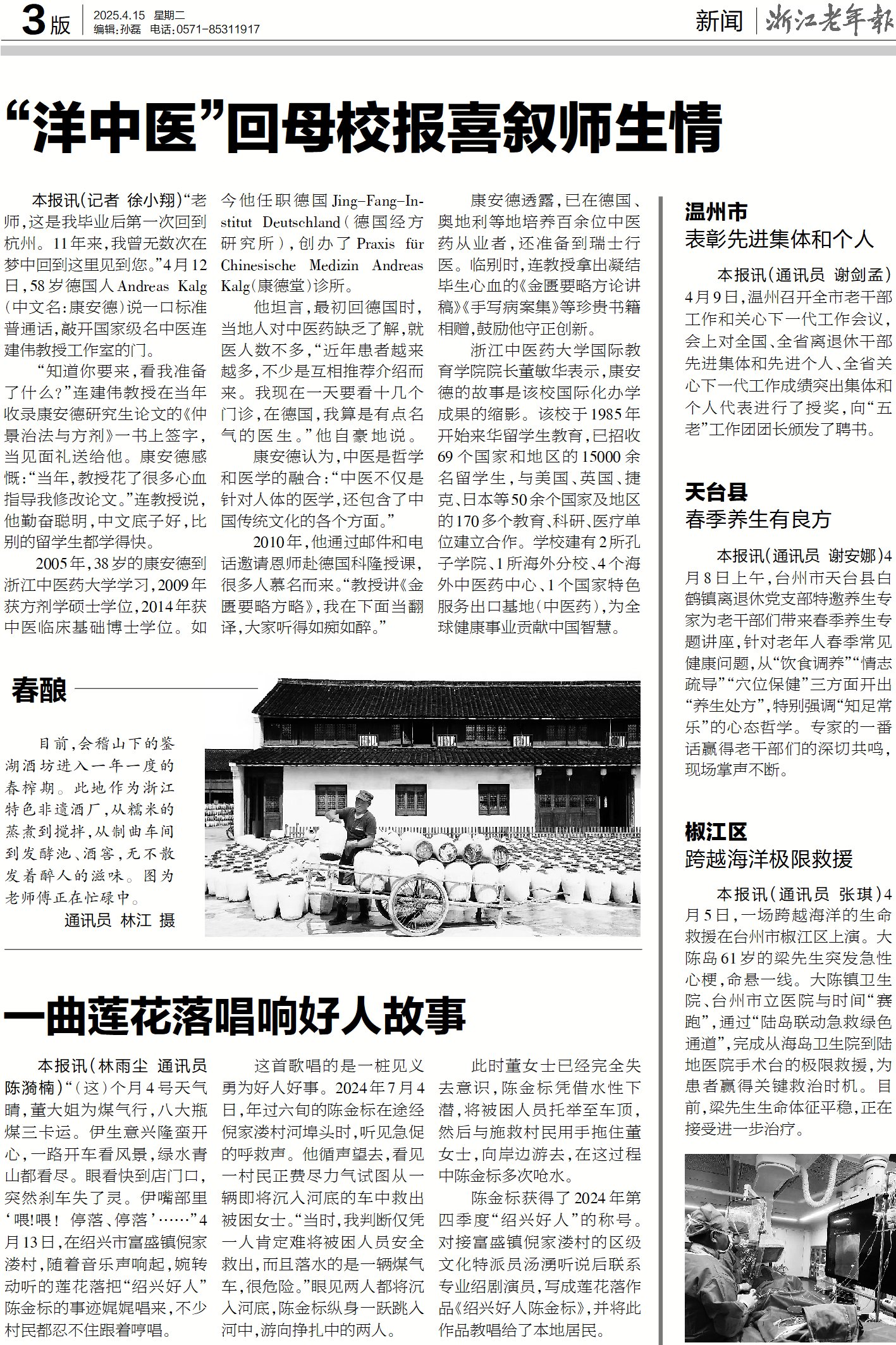 “老师,这是我毕业后第一次回到杭州。11年来,我曾无数次在梦中回到这里见到您。”4月12日,58岁德国人Andreas Kalg(中文名:康安德)说一口标准普通话,敲开国家级名中医连建伟教授工作室的门。