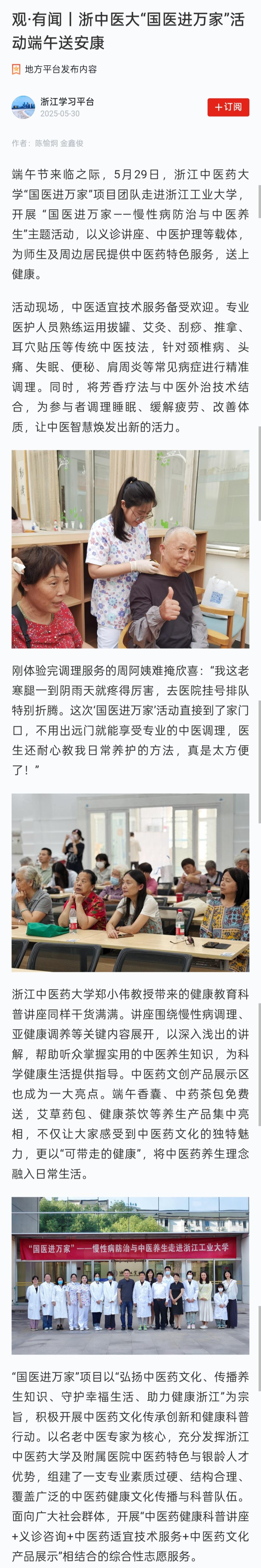 观·有闻丨浙中医大“国医进万家”活动端午送安康