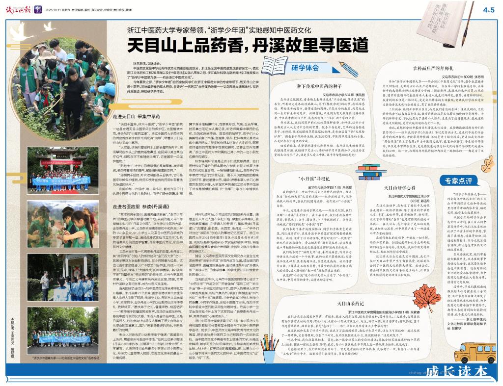 今年夏秋之际,“浙学少年团”的百余位同学在浙江中医药大学专家的带领下,到天目山上学采中草药,品味最新鲜的草木药香,并走进“一代医宗”朱丹溪的故里——义乌市赤岸镇东朱村,探寻丹溪医道,解锁研学新体验。