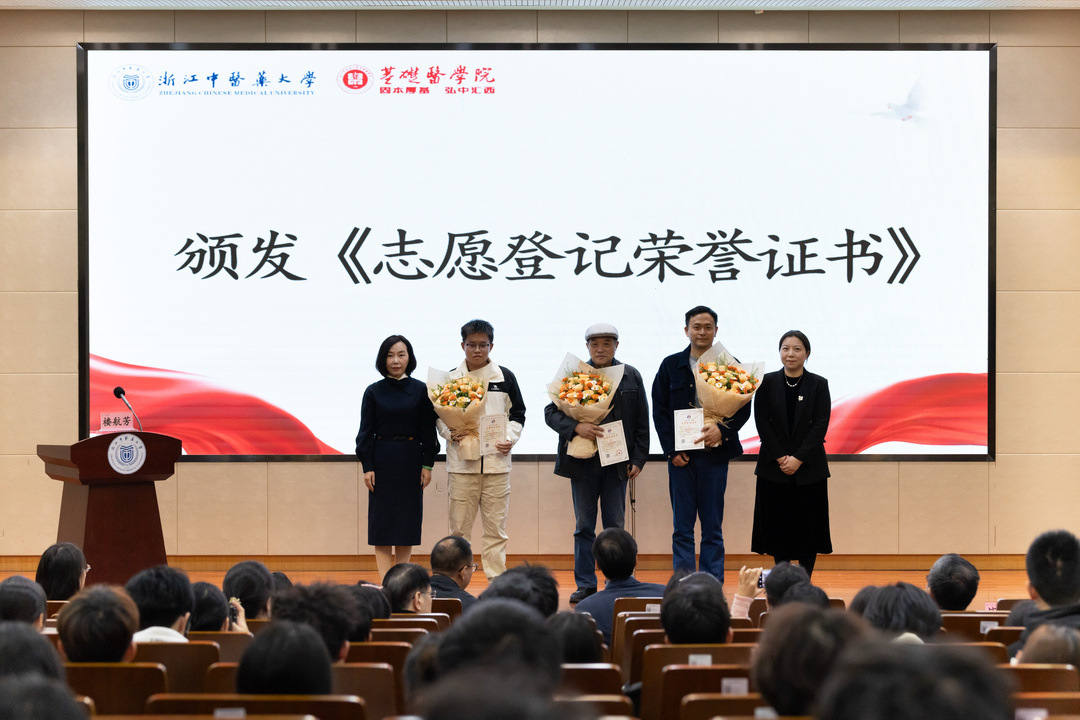 颁发《志愿登记荣誉证书》。浙江中医药大学供图