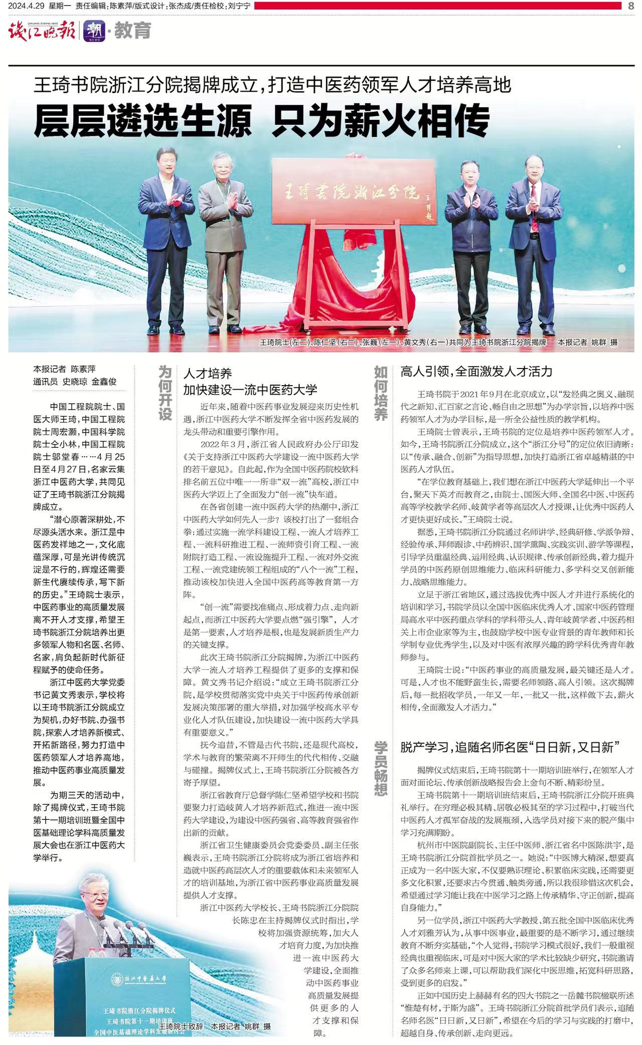 近年来,随着中医药事业发展迎来历史性机遇,浙江中医药大学不断发挥全省中医药发展的龙头带动和重要引擎作用。