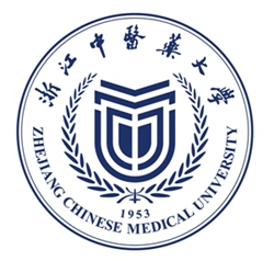 以国际流行的盾形为基本形,寓意走向世界,符合建设具有特色优势的教学研究型大学奋斗目标。盾牌中心的“中”字体现了学校办学的中医药特色;“中”字外延的双手爱心图案,体现学校“学生为本”的办学理念;围绕“中”字周围的“C、M、U”字是“Chinese Medical University”的首字母。盾牌顶端图形像翻开的书本,体现了学校的属性,又像是一双展开的翅膀,象征放飞梦想,蓄势腾飞,体现学校“学术至上”的办学理念。外围“远志叶”、下方为“本”字,寓意“求本远志”校训,也寓意美好愿望的实现。1953是指学校创建时间。标志以蓝色为基调,象征钱塘潮,代表学校的地域属性。